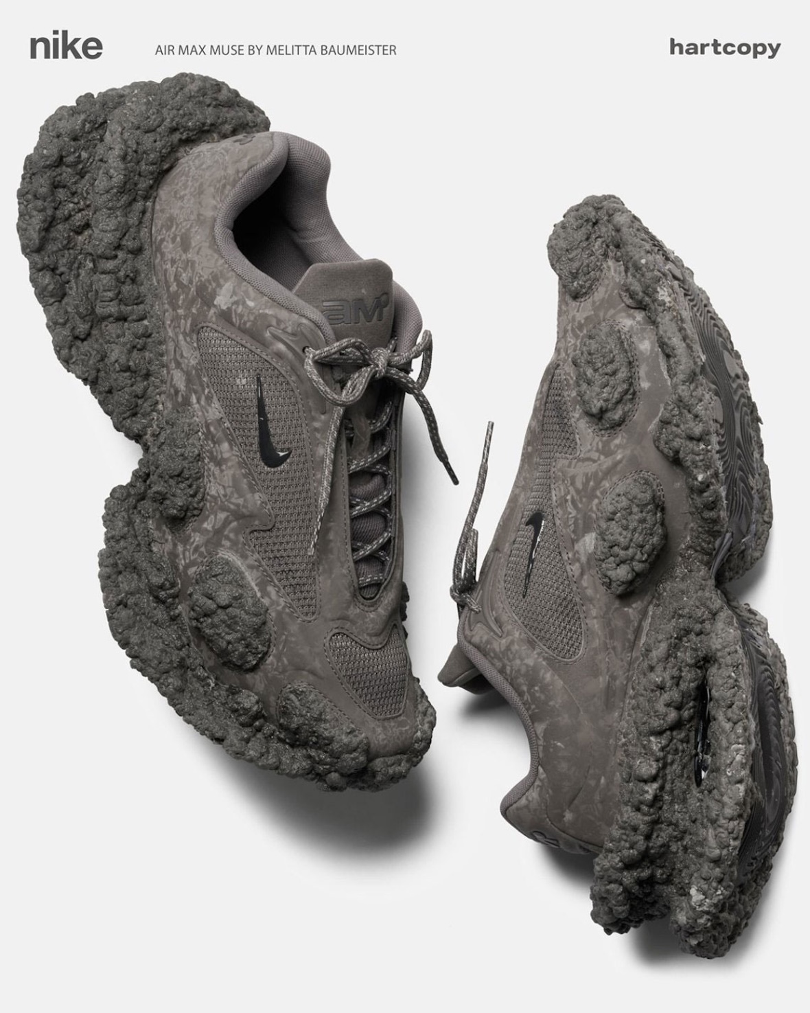 멜리타 바우마이스터의 조형적 실험 정신은 최근 나이키와의 협업에서 그 정점을 보여주었습니다. 런웨이와 에디토리얼 이미지를 통해 베일을 벗은 '나이키 에어 맥스 뮤즈(Nike Air Max Muse)'는 2026년 여름 출시를 앞두고 있으며, 기능적 도구를 넘어 갤러리에 전시될 법한 예술적 오브제로 재탄생했습니다.